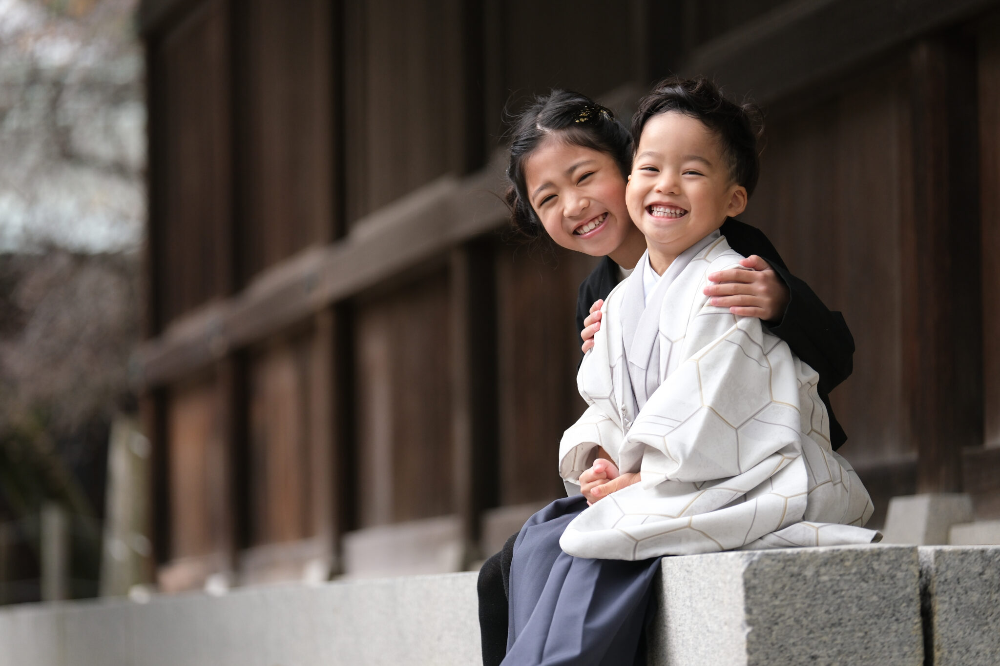 広い空の下、神聖な神社で、ふとした瞬間の笑顔を撮影したい。