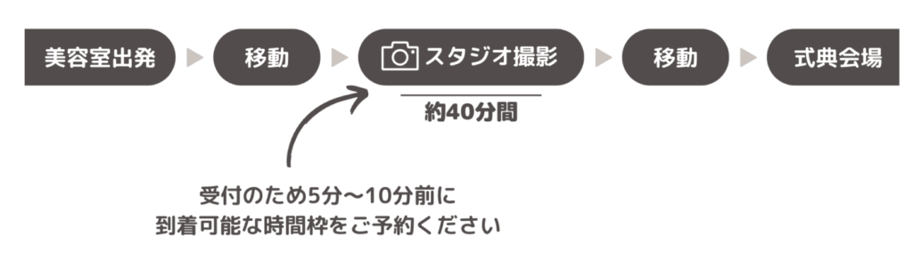 美容室の【着付け完了時間】と【式典開始時間】をご確認の上、