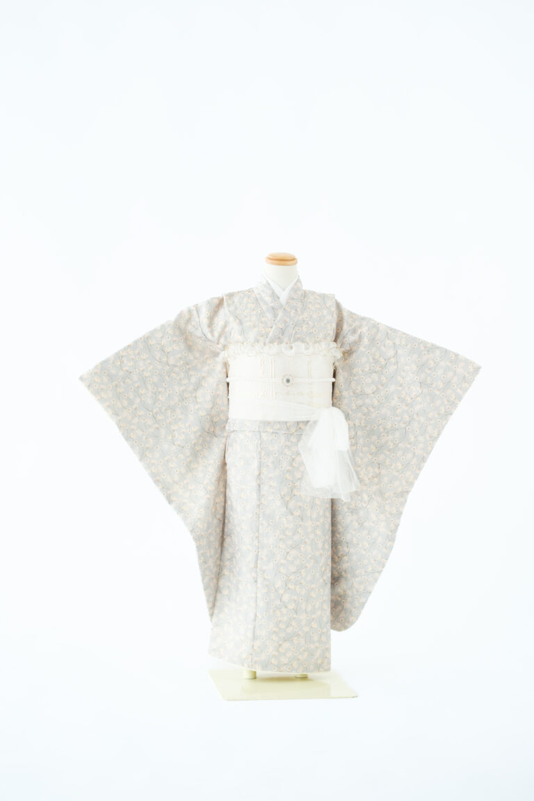 七五三のお祝いにぴったりな、華やかで可愛らしい被布セットです。赤地に白やピンクの花柄が映える、古典柄の菊花文様があしらわれています。菊は皇室の紋章としても知られており、高貴なイメージがあります。また、菊は長寿延命の象徴とされており、七五三のお祝いにふさわしい柄です。